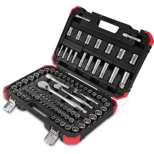 - Comes with durable case that features reinforced corners, durable binding and stainless steel latches to ensure your socket set is protected no matter what the work day throws at you.