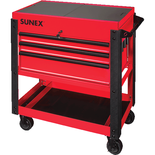 3 Drawer Service Cart with Sliding Top - Red