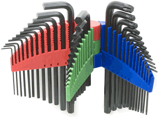 - 13 Metric hex keys- 1.27, 1.5, 2, 2.5, 3, 4, 4.5, 5, 5.5, 6, 7, 8 and 10mm