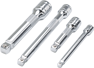 - Includes 4 extensions: 1/4" drive x 4", 3/8" drive x 3", 3/8" drive x 6", 1/2" drive x 5"