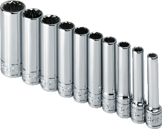 Contains: 1/4" Dr. - 3/16", 7/32", 1/4", 9/32", 5/16", 11/32", 3/8", 7/16", 1/2", and 9/16" Deep Sockets