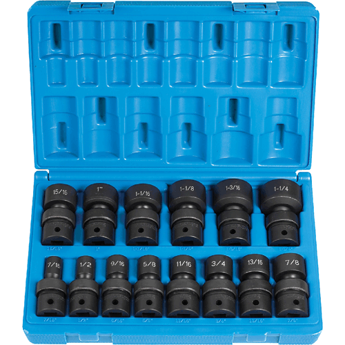 Set contains 12 Point Universal sizes 7/16" to 1-1/4".