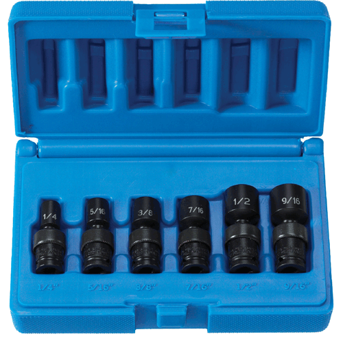 Set contains 6–Point Universal sizes: 1/4'', 5/16'', 3/8'', 7/16'', 1/2'' , 9/16''