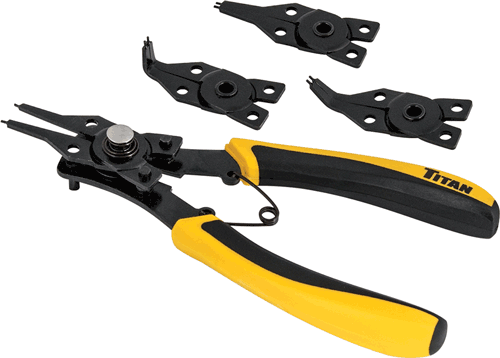 4 in 1 Combination Internal/External Snap Ring Plier Set Manufacturer: TITAN Availability: 10000 in stock SKU: TTN18402 Manufacturer part number: 18402 UPC: 0802090184024 Call for pricing Qty: Buy Now Custom wishlist OK Add to wishlist Add to compare list Email a friend For use with both internal and external snap ringsIncludes 4 interchangeable tips: 2 straight, (1) 90° and (1) 45°Comfort grip handlesEffective range: 10–50 mm (3/8" x 2") Overview Attachments Reviews For use with both internal and external snap ringsIncludes 4 interchangeable tips: 2 straight, (1) 90° and (1) 45°Comfort grip handlesEffective range: 10–50 mm (3/8" x 2")