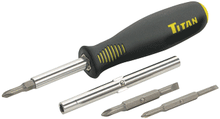 Contains: 4 screwdriver tips: #1 & #2 Phillips and 1/4" & 3/16" Slotted, 2 Nutdrivers: 1/4" & 5/16"