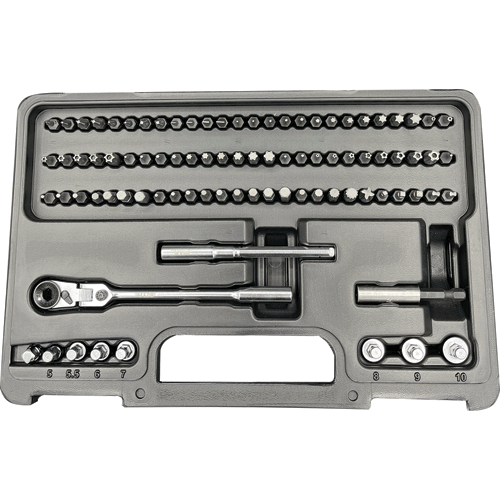 - Master set includes a wide array of bits: metric hex, SAE hex, Phillips, Phillips ACR, slotted, triple square (XZN), TORX, TORX Plus, TORX tamper resistant, TORX Plus tamper resistant, MORTORQ, square (Robertson) and clutch.