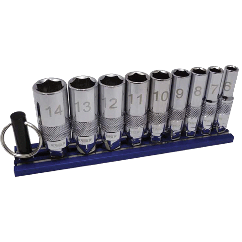 9 Pc. 1/4" Dr. Deep Dual Drive Metric Chrome Socket Set on 6" Magrail