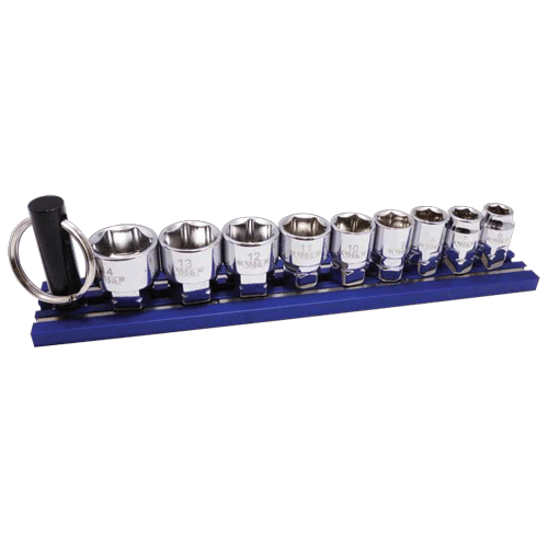 9 Pc. 1/4" Dr. Shallow Dual Drive Metric Chrome Socket Set on 6" Magrail