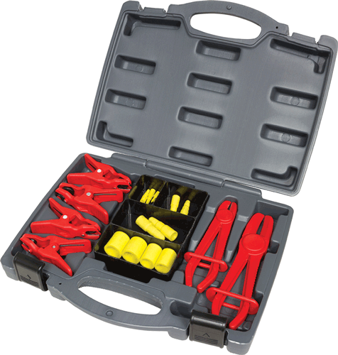- Line clamp pliers seal flexible brake lines, fuel and vacuum lines, with smooth rounded edges that will not damage internal hose reinforcement.