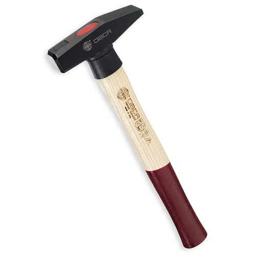 Ash handle double curved with red laquer, fixed w/ round steel wedge and red epoxy resin
